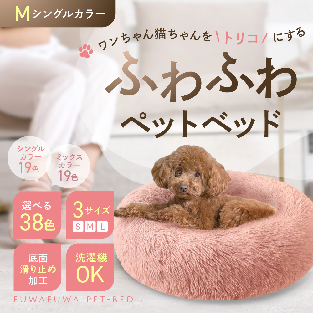 【Mサイズ・シングルカラー】ペットベッド 丸型 洗える ペットクッション ペットグッズ 犬猫対応 やわらかクッションベッド